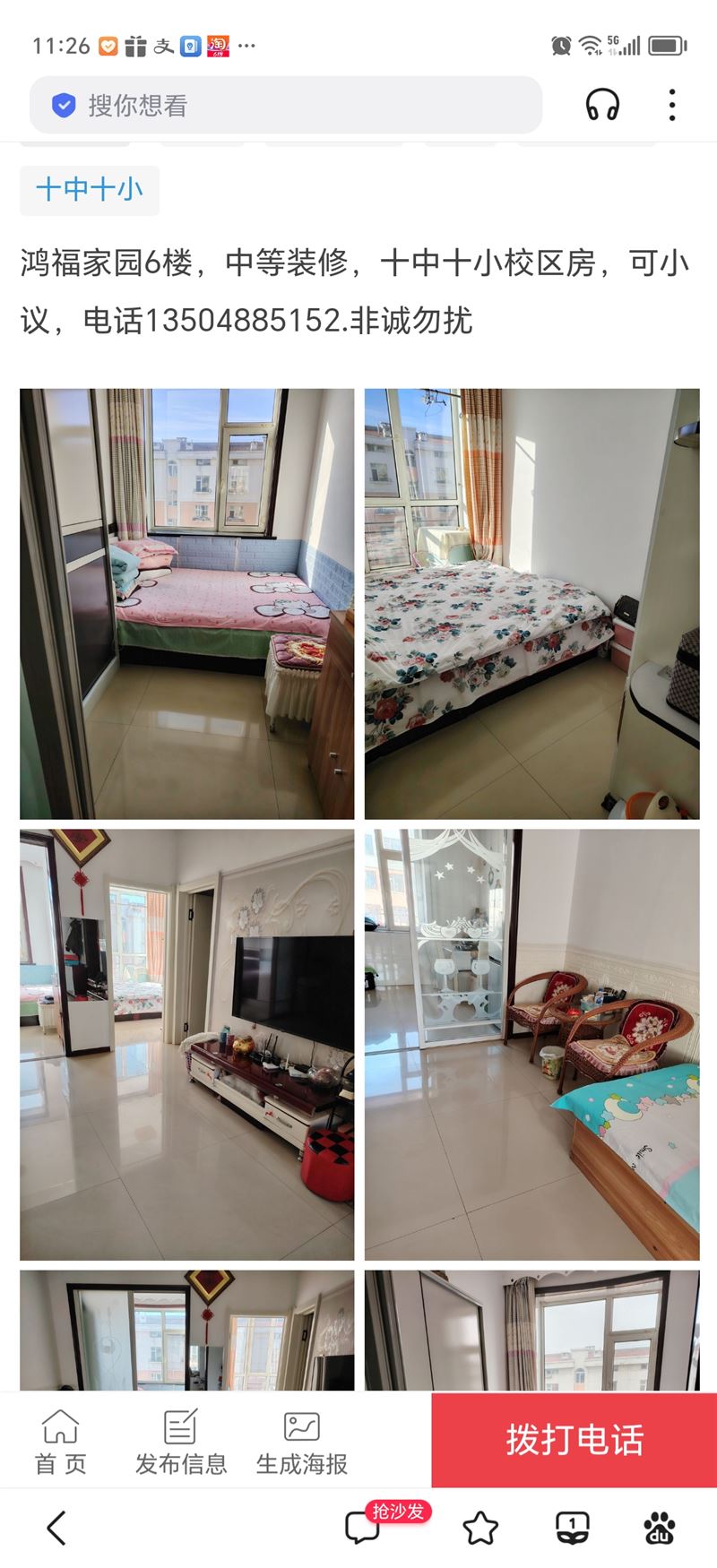 鴻福家園六樓,中等裝修,十中十小校區(qū)房。13.8萬可小議,電話13504885152 非誠勿擾