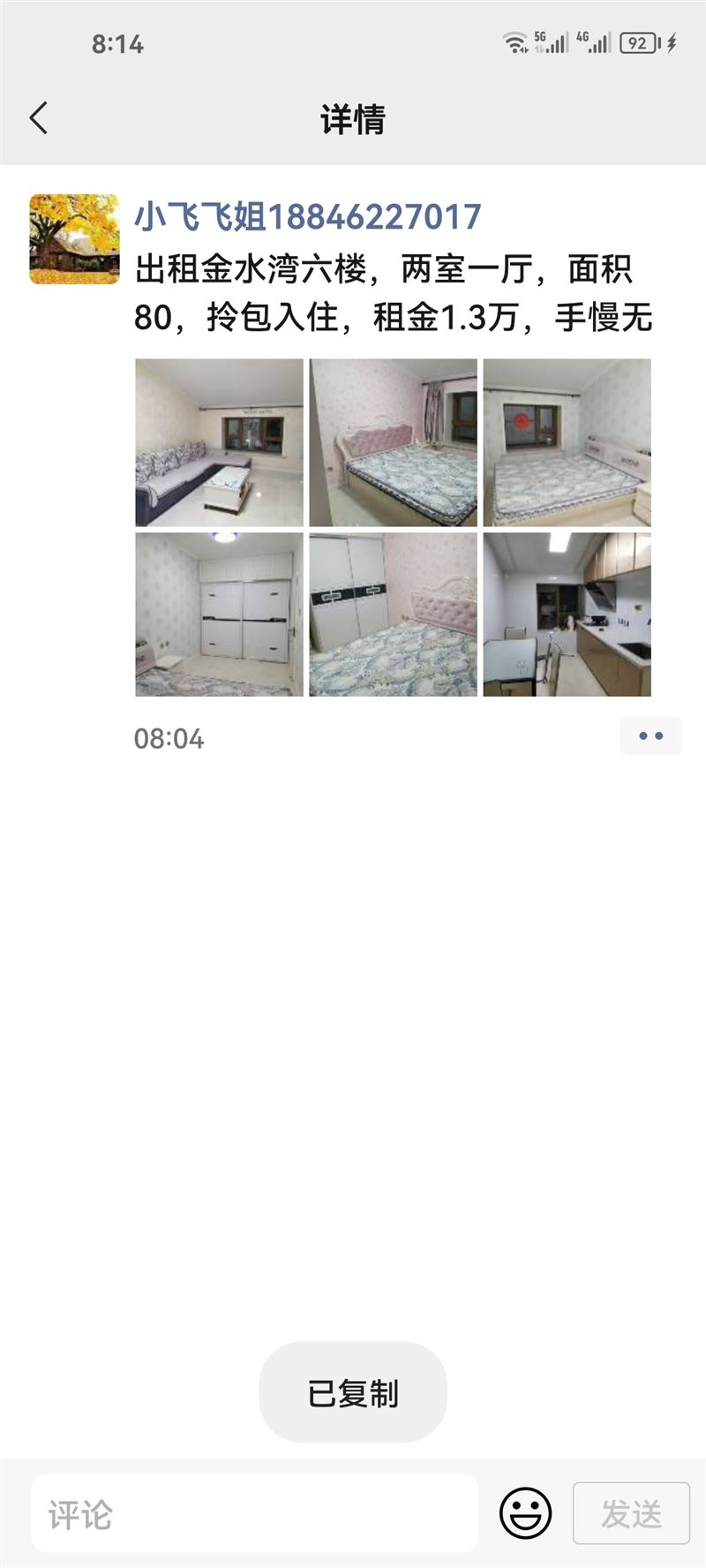 年租8500。 5月份出租