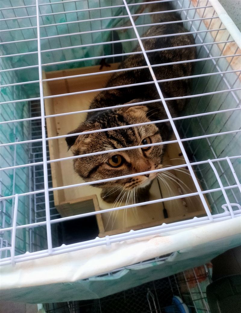 折耳貓一只疫苗都打了一歲半。有貓籠子。貓砂,盆兒,貓糧都贈送。