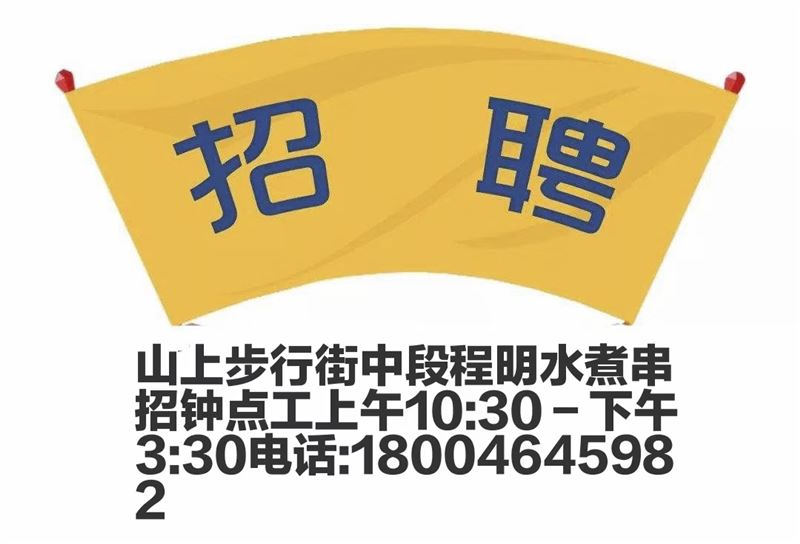 山上步行街程明水煮串,招聘兩名服務(wù)員。早9點(diǎn)半到下午3點(diǎn)半工資每月1500,要求干活麻溜利索快。