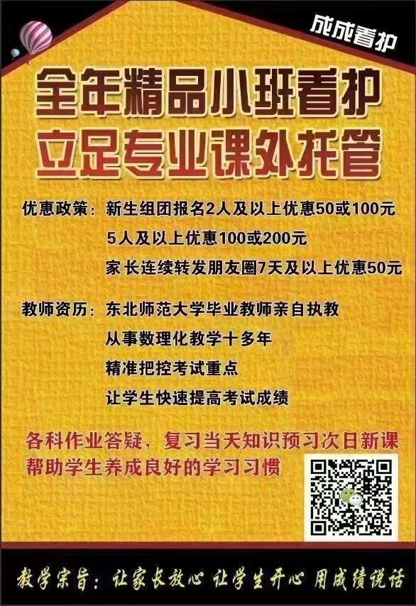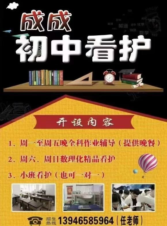 成成看護周一至周五晚看護輔導,周六周日數(shù)理化精品看護,小班看護,也可一對一